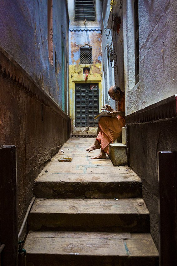 A primeira, na Índia, numa das tantas vielas de Varanasi. Um flagra de um cotidiano colorido na hora do chá digestivo sob um calor escaldante.